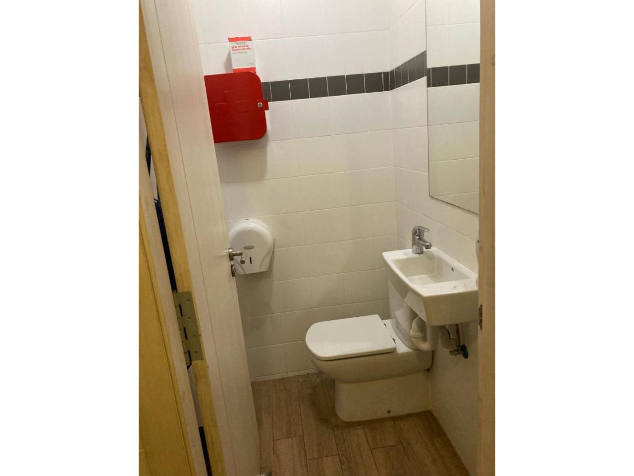Volviendo a la zona de bar, vemos al fondo unas escaleras que dan acceso al piso de arriba. La planta de arriba se distribuye de la siguiente manera: a mano izquierda la cocina, seguido de los baños ( hombre y mujeres). Pasado los baños a maño derecha, tenemos el almacén, que tiene entrada por este piso o por el portal de la comunidad ( hace también de salida de emergencia), en este almacén encontramos estanterías y 2 arcones para los congelados. Volviendo a la zona de entrada a esta planta, de frente esta el comedor, amplio y luminoso. Desde esta sala podemos accedes a la oficina que cuenta con una bañó completo. y al vestuario que cuenta con baño, zona de cambiarse y almacén. Desde el comedor también se acede a la cocina, dado la oportunidad de salir por el comedor o directamente a las escalera de bajada a la barra.