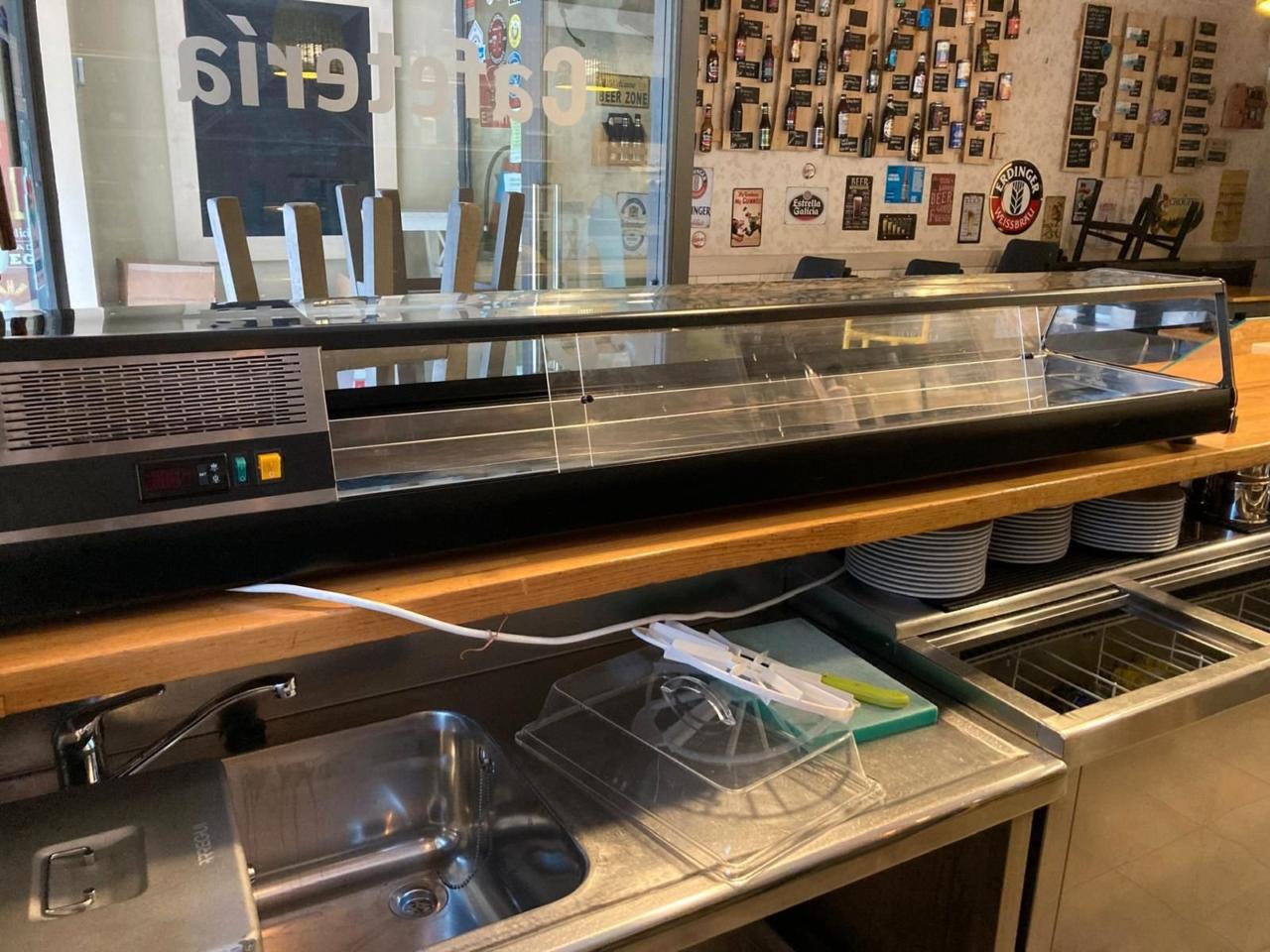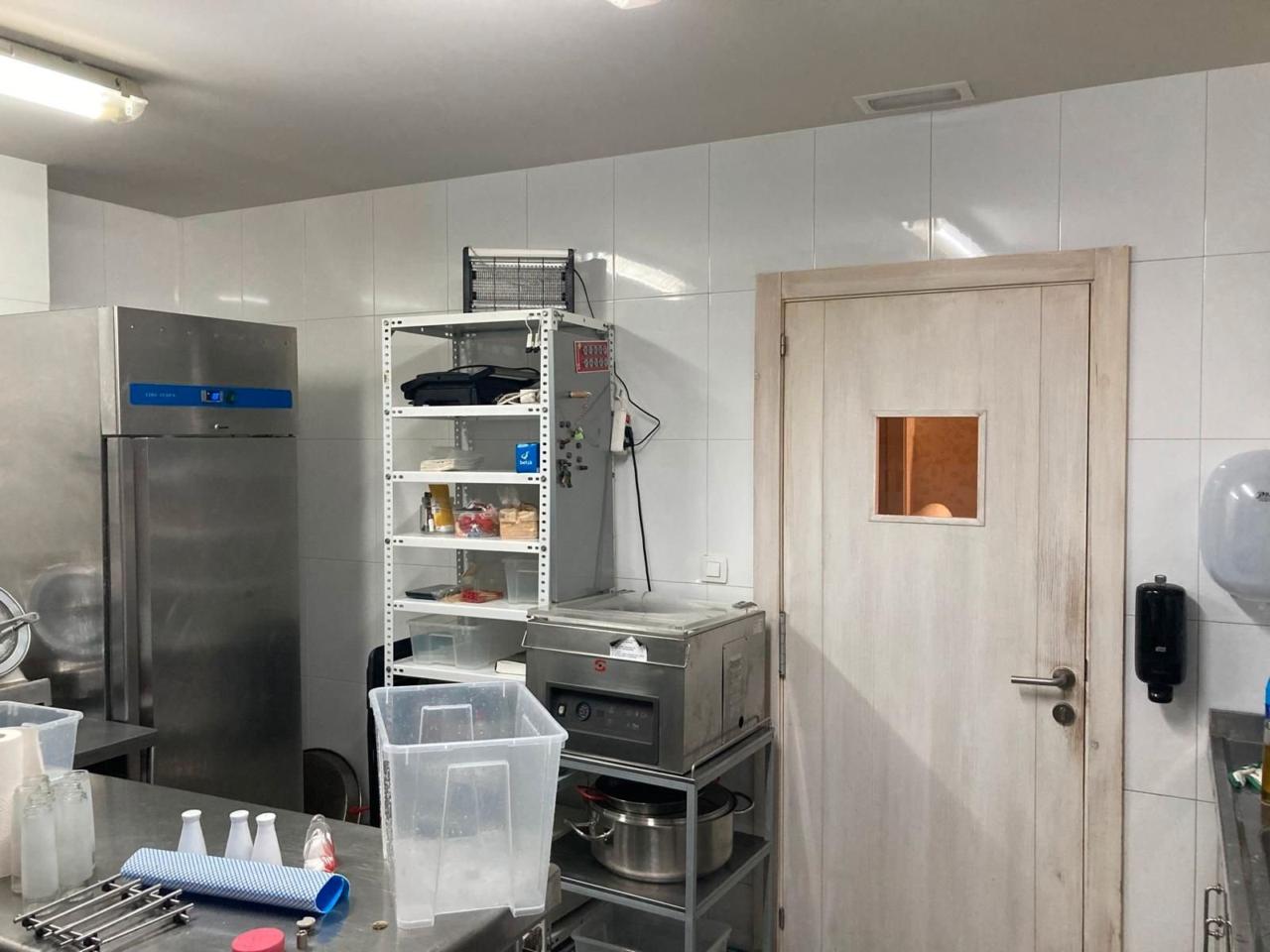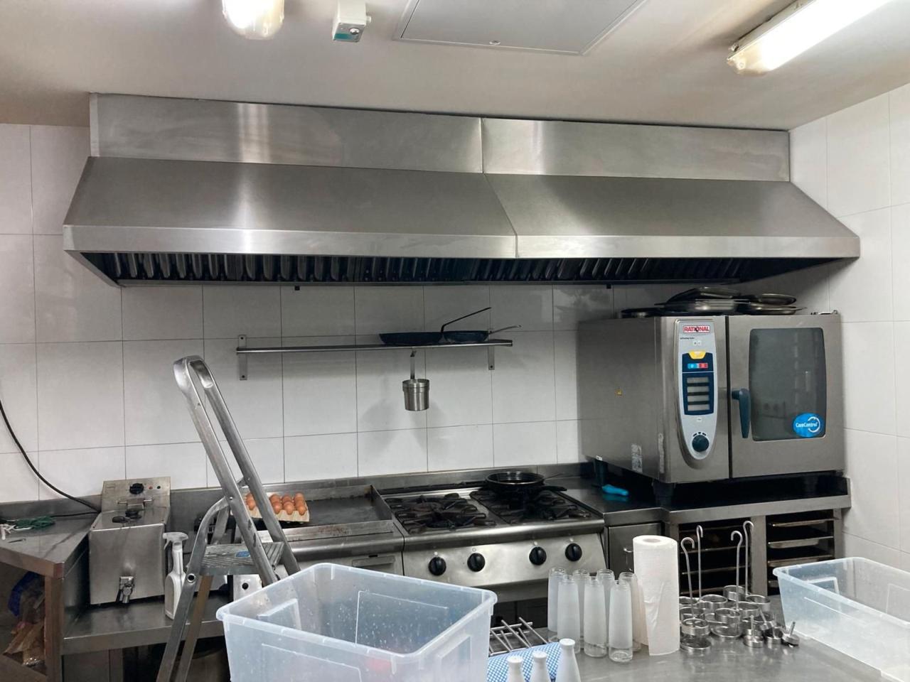 La cocina cuenta con, lavavajillas, envasadora al a vacío, 2 neveras grandes, horno ( Rational ), fuegos de gas, plancha de hierro y freidoras. Toda la zona de cocinado esta cubierta por una campana extractora industrial.